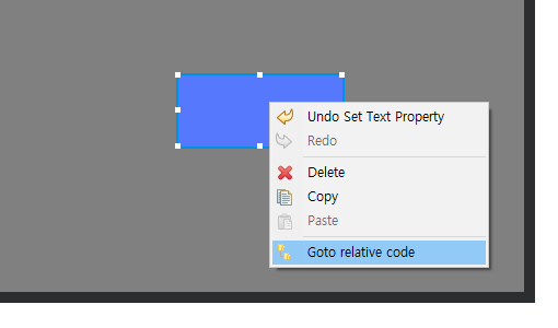 UIファイルにあまりにも多くのコントロールを追加したとき、Logic.ccファイルも多くの関連する関数が生成され、これは特定のコントロールに関連する関数を探したいときは、多くの時間を消費するしかありません。 しかし、幸いなことにFlywizOS IDEは急速にコントロールに関連するコードを探しに行くことができる機能をサポートします。 UIファイルのエディタ画面でコントロールを選択し、右クリックでポップアップされるメニューの中Goto relative codeをクリックすると、該当するLogic.ccファイルの関連する関数に直接移動します。